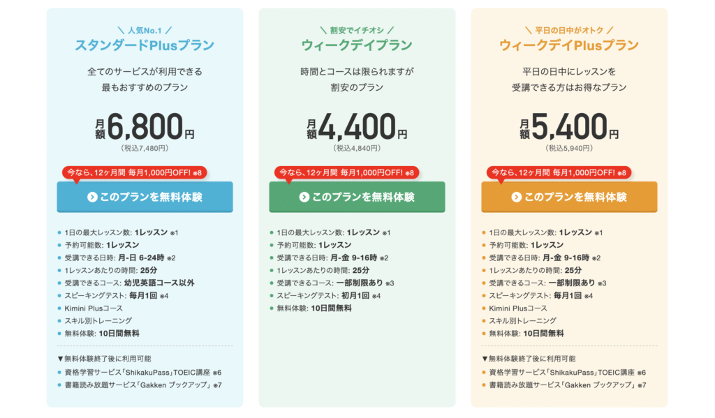 Kimini英会話の料金形態は?3つのプランを徹底比較